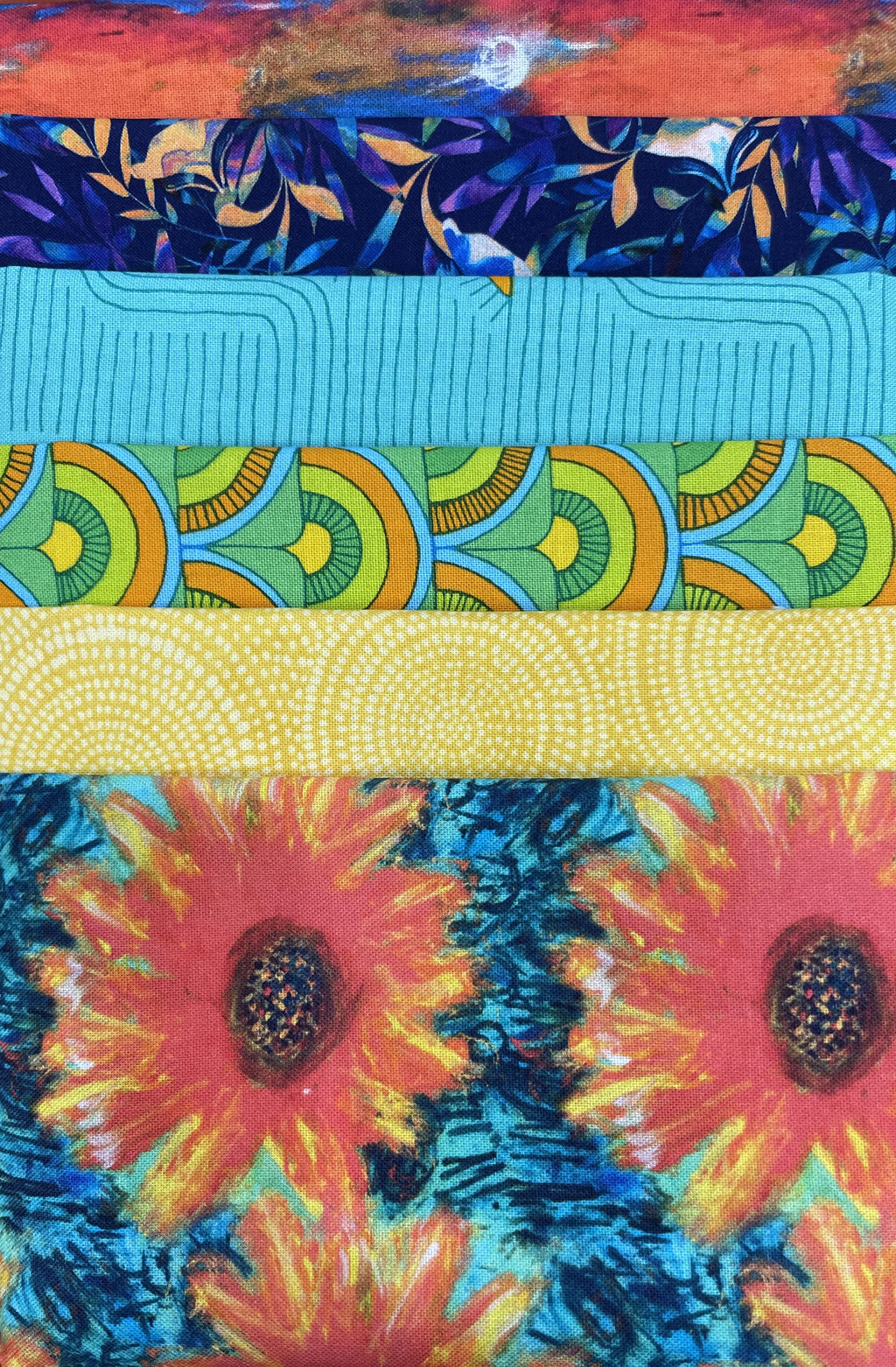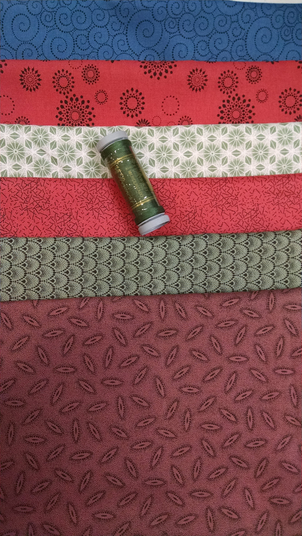 Half-Yard Pack: 6 Half Yard cuts and 1 spool of coordinating Presencia thread.